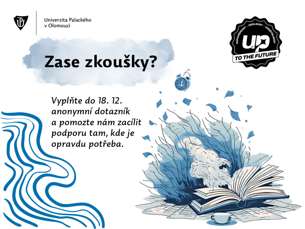Blíží se zkouškové – jedno z nejnáročnějších období akademického roku. V rychlém časovém sledu musí studující obstát u různých vyučujících, z různých předmětů a často i na více fakultách. Univerzita Palackého je si této výzvy vědoma a ráda by byla svým studentkám a studentům co nejvíce nápomocna. Proto přichází s anonymním průzkumem, který prozradí, jak studující zkouškové období prožívají a co by jim pomohlo jej lépe zvládnout.