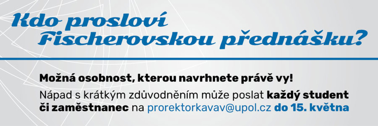 Už od roku 1994 se zpravidla v listopadu koná přednáška k poctě prof. PhDr. Josefa Ludvíka Fischera, který byl prvním rektorem Univerzity Palackého v Olomouci po jejím obnovení v roce 1946. Nominace na proslovitele/ku fischerovské přednášky v roce 2024 posílejte do 15. května.
