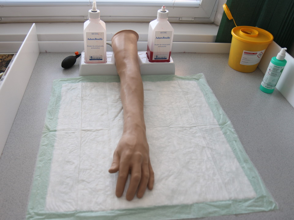 model pro nácvik výkonů v oblasti žil (odběry krve, intravenózní injekce, zavádění periferních žilních vstupů, aplikace infuzí atd.)