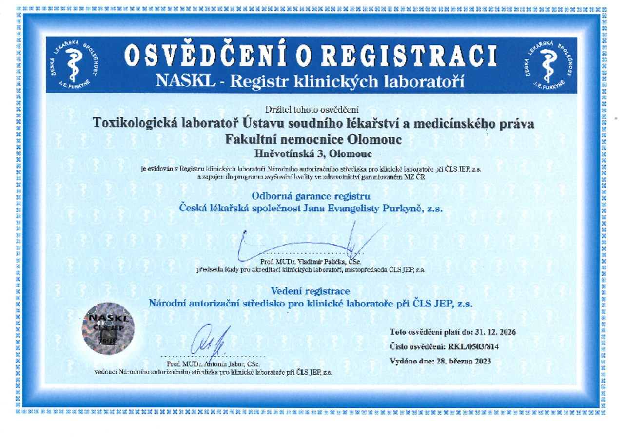 Součástí Ústavu soudního lékařství a medicínského práva Fakultní nemocnice Olomouc je také toxikologický úsek, rozdělený na dvě samostatné laboratoře.