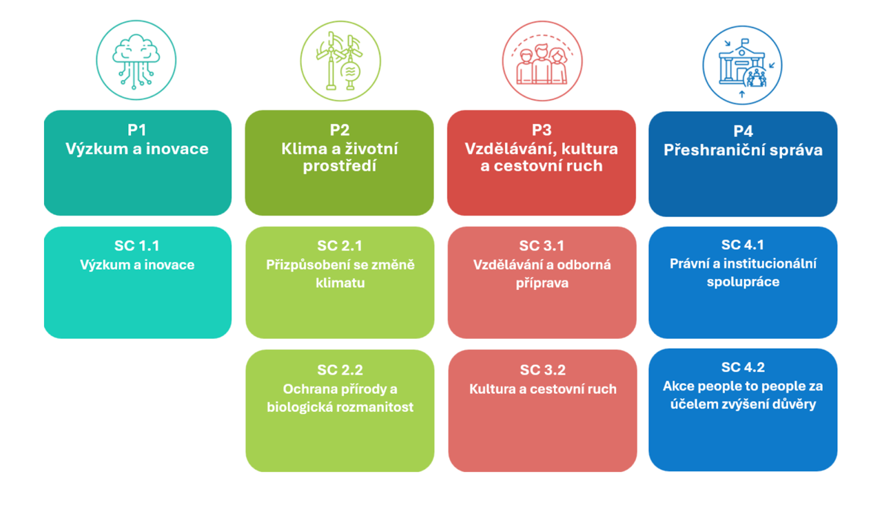 Na základě zjištěných potřeb v programovém území byly stanoveny priority a specifické cíle, které budou v programu podporovány. Mezi prioritní oblasti patří: