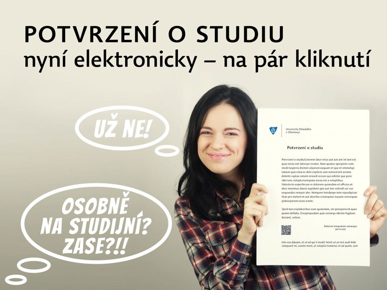 O jednu překážku méně mají nově studenti Univerzity Palackého. Nebudou už totiž muset chodit osobně pro potvrzení o studiu na univerzitu, ale mohou si ho sami vygenerovat v Portálu UP. Škola tak v rámci postupné elektronizace různých dokumentů usnadňuje studentům přístup k potřebnému dokladu.