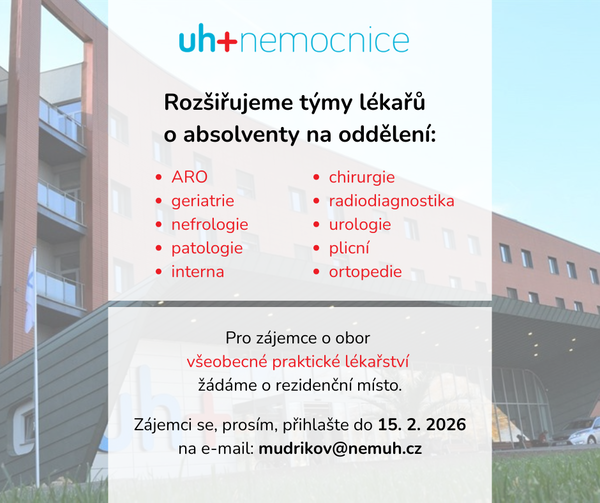 Pro zájemce o obor všeobecné praktické lékařství žádáme o rezidenční místo. Zájemci se, prosím, přihlašte do 15. 2. 2026 na e-mail: mudrikov@nemuh.cz.